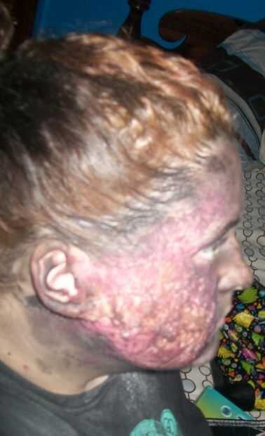 Tire del lóbulo de la oreja cerca de la cara y use la cinta para sujetarlo. Luego se comenzará a aplicar el látex líquido. Quiera la quemadura que se aplican. Deje que se seque, pero todavía pegajosa. Para construir la quemadura debe utilizar pedazos de la bola de algodón y colocar para hacer lugares que parecen más profundas o más. luego vuelva a aplicar más látex líquido. Permita que seque completamente.