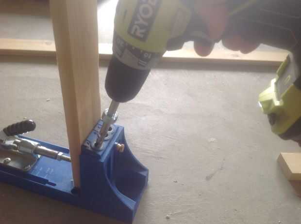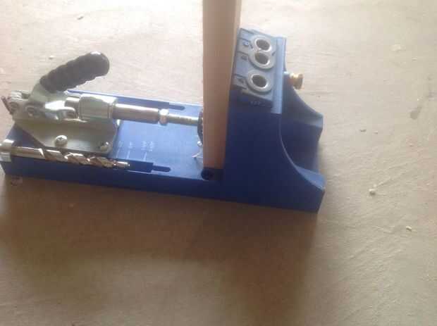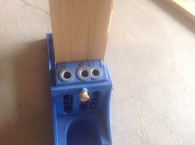 Primero ingresé a los tableros de madera utilizando una plantilla de pocket Kregs y pegamento de madera, pero hay muchas otras maneras de hacerlo. Comienzo haciendo un rectángulo básico con los siguientes cortes: 48 en x 2 1/2 y el 27 1/2 en x 2 1/2 pulgada taladro hacia fuera los agujeros de bolsillo utilizando la plantilla, hacer dos agujeros en los extremos de la madera.