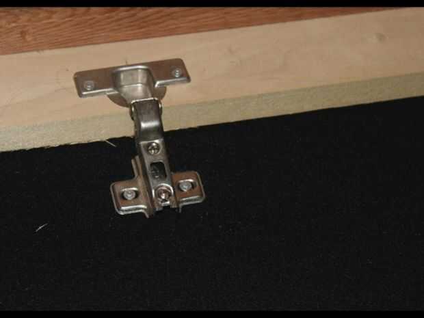 Yo quería hacer el interior parte de la mirada de almacenamiento oculto igualmente agradable como fuera, así que añadido negro fieltro tela a él. Tiene sentido poner tanto esfuerzo en un proyecto y no hacer el interior apenas como agradable. Tan lo que hice es comprar a tela negra de la tienda de artesanía o incluso Walmart según selección allí. Aprender la manera dura que es más fácil eliminar a los choques y las bisagras del tablero.