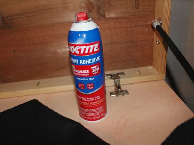 Empezar por poner a la tela directamente sobre el tablero para ver si tienes la cantidad correcta de la tela. Entonces usé Loctite claro Spray Multi propósito adhesivo, que compró craftstore, pero se podían comprar en cualquier ferretería. Yo se a partir de una esquina o lado luego mi camino hacia el extremo opuesto. Rocíe el uno lado con sobre pulgadas par del adhesivo establecen a la tela y alisar el material para obtener los pliegues plana, hacerlo en pequeñas secciones a la vez hasta que tenga el tablero entero cubierto. Recomiendo practicar con raspar madera tela y repuestos antes de saltar en su proyecto para obtener los resultados que desea. Tuve que cortar un agujero en la tela con una hoja de afeitar para dejar la madera del soporte que sujeta el pestillo plástico a través de. También hacer las marcas donde el soporte de la bisagra y soporte de amortiguadores de gas sería con una tiza blanca. Esto ayuda a encontrar los orificios cuando se vuelva a montar el hardware. Una vez que la tela se coloca hacia abajo y seca, tomar una hoja de afeitar y cortar a la tela a lo largo de los bordes del tablero. Después de todos los bordes de la tela con el tablero, entonces es tiempo de volver a conectar el hardware.