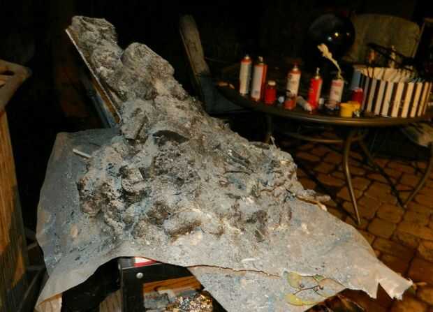 Una vez seca la pintura aplicar una ligera capa de aerosol de bastidor recubierto de goma, entonces cubierta de ceniza mientras todavía mojado. Aplicar capas adicionales del spray ahulado y ceniza según sea necesario.