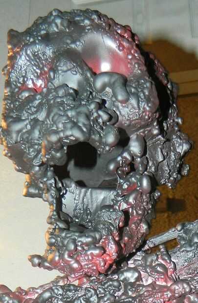 Vuelva a colocar la mandíbula inferior con cinta o pegamento para que éste quede colgando de un jadeo como se ve arriba