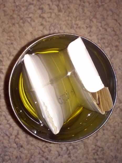 un quemador de aceite esencial (ambientador) hecho de una lata.Materiales:Una lata pequeña (yo usé una lata de salchicha de Viena)Vela de téEncendedorAceite esencial de su elecciónHerramientas:Buenas tijeras, tijeras u otro dispositivo de cortePuede