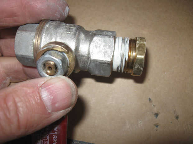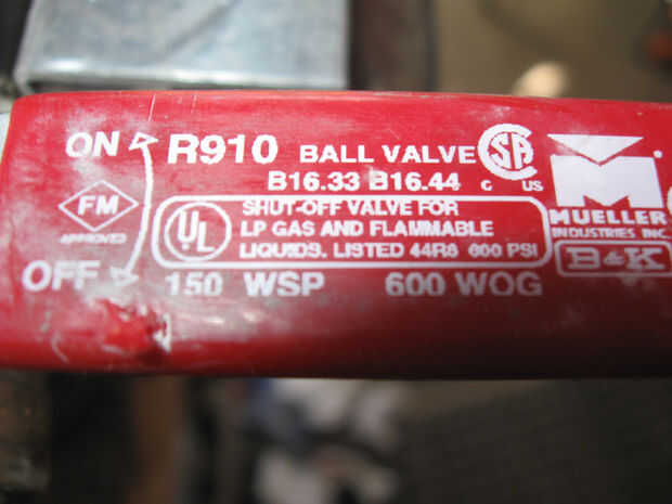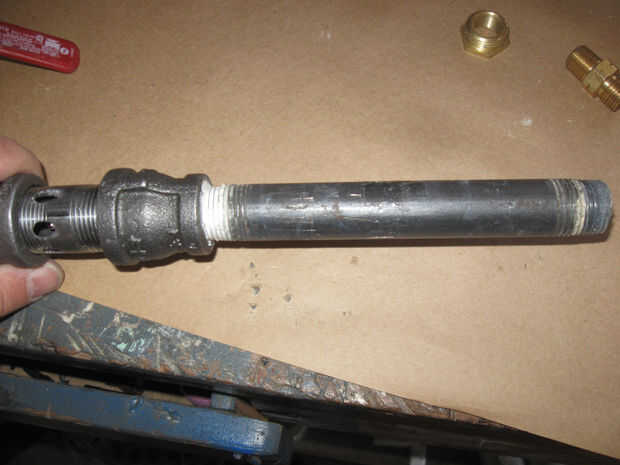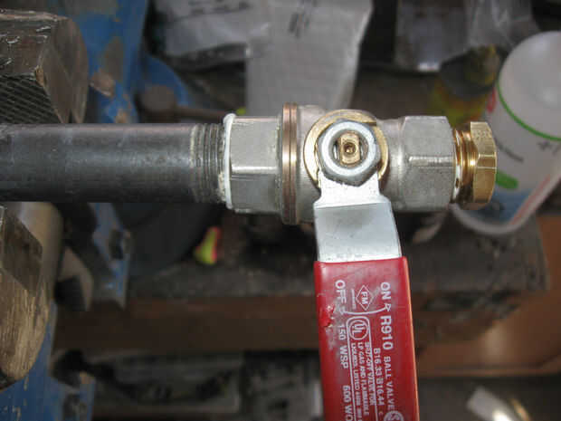 Opté por usar un 1/2 X 6 pulgadas pezón como un mango, esto estaba ensartado en el reductor de boquilla de propano y luego un LP clasificado válvula de bola fue colocado en la extremidad.