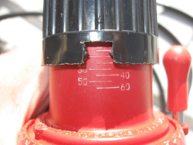 Respaldados por el derecho regulador 0 continuación, había aumentado gradualmente la presión hasta que pude encender la llama. entonces aumentó la presión hasta el punto justo antes de que la llama salta fuera de la punta de la antorcha. El calor es tremendo!