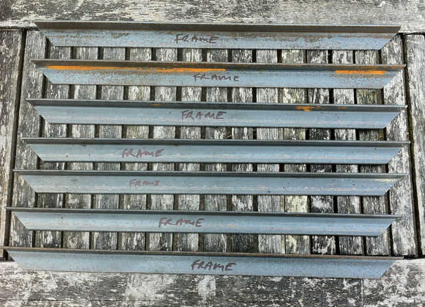 piezas de 8 x 45cm (450mm) con un ángulo de 45 grados en cada extremo para los 2 cuadros