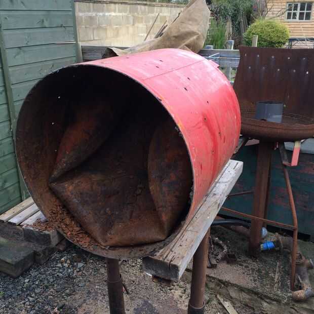 Supe de un proyecto anterior con uno de estos tanques que tienen un diafragma de goma en el interior, también sabía que, después de haber descubierto la manera dura, que puede perforar las soldaduras todo el camino alrededor de los anillos que sujetan el diafragma en lugar y luego recortar. Entonces perforó todas las soldaduras, y luego cortó la parte superior del tanque con una amoladora de ángulo, cortar el diafragma hacia fuera y quitado lo anillos de retención de acero. Esto me dejó con el cuerpo de mi quemador.