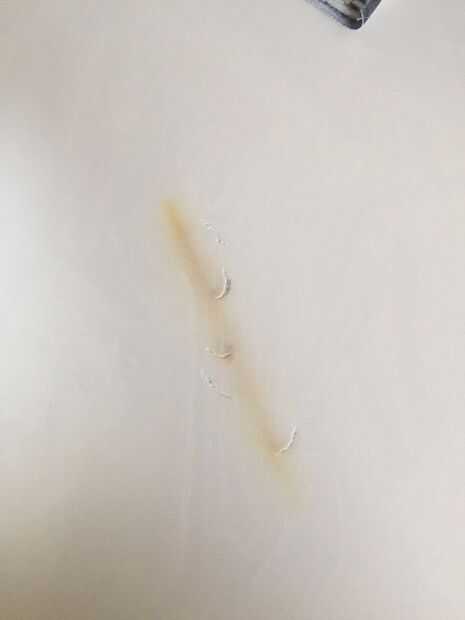 OK, después de 45 minutos... esto es el resultado. Al parecer la 'quemadura' había burbujeado el mármol cultivado bastante profundo. Utilizando el papel de lija 'fino' al principio es como tomar un cuchillo de plástico a una lucha de arma. Se acaba no haciendo el trabajo. Yo me desempolvó, hizo un viaje a la ferretería local y tomó el papel de lija más grueso hecho de plástico/metal/madera.