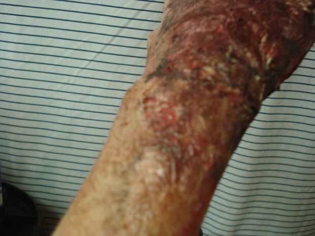 ¿Recuerdas la nota acerca de rasgar los agujeros en el tejido? Los agujeros son donde desee agregar la menor cantidad de pintura y la sangre de la mayoría. Termina por mirar más como una quemadura de agua claro.