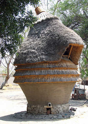 El horno de paja y arcilla que usaremos ha dado el nombre de "La mascota" mi amigo Yoshi porque es cuuutte shoooo y borrosa! AW! Fue inspirado por un sistema de arcilla/de la paja del zarzo innovado por mi amigo Michael Smith, autor constructor natural y autor de La mano de la casa de esculpido. Resulta que él fue inspirado por un sistema utilizado para la construcción de graneros en México, similar a lo que estoy haciendo con el horno del animal doméstico. Los graneros son estructuras de paquetes en espiral de paja mezclados con arcilla. Mi concepto era crear cierto aislamiento utilizando un montón de paja. Hay una gran proporción de paja en el horno, que puede parecer temerario. Sé, dudaba de que mi idea funcionaría incluso hasta que lo probé. No es idiota, te lo juro, sólo tiene que ser considerado en contexto. Se trata de un horno temporal. Creo que usé el más duró de 8 quemaduras. Construye para ello ha realizado tres quemaduras y parece que podría hacer mucho más. La arcilla protege las fibras de un grado y cuando cocina climatizada en algo como cerámica. Cada quemadura erosiona la pared del horno un poco hasta que aparezcan agujeros y es tiempo de construir otro. El horno puede estar muerto, pero los fragmentos de horno hacen una enmienda de suelo valioso junto con las cenizas, fragmentos de cal y cualquier carbón que queda. Arcilla quemada tiene una larga historia de uso en suelos. Mi mascota pasado está enterrado en mi cama de flor de azafrán. He encontrado las raíces crecen a través de los orificios de los fragmentos, así que al parecer les gusta!