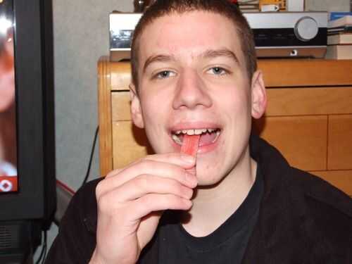 Tomar el palillo de la goma que sacó de la envoltura (no coloque el contenedor en su boca), lleva a la boca y masticar. No hacer esto en cualquier otro orden no importa lo divertido que pueda parecer.