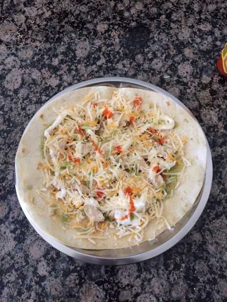 empecé a hacer en mi estudio donde he tenido días de mucho trabajo, un plato caliente y poco tiempo para comer! Sigue siendo un favorito para un bocado rápido :)Esto es lo que se necesita:1. aceite de oliva2. frescos tortillas3. pimienta queso4. chip