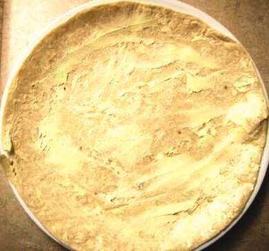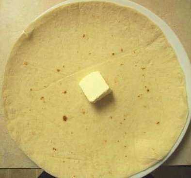 Cuchara de mesa un lugar de mantequilla en la parte superior de la tortilla. Unta la mantequilla uniformemente para que cubra todo el lateral.