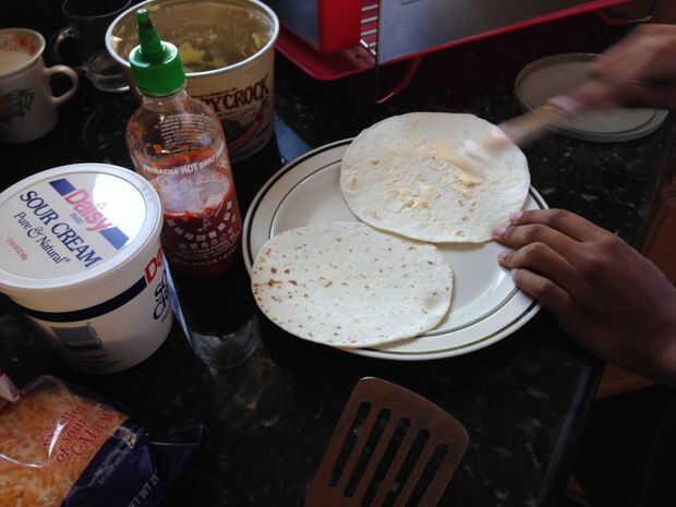 manera fácil de hacer gran queso quesadilla de tienda compraron los alimentos envasados.Usted necesitará lo siguiente:harina/corn tortillasqueso (yo prefiero Munster, uso lo que gusta comer)sartén lo suficientemente grande como para las tortillas de
