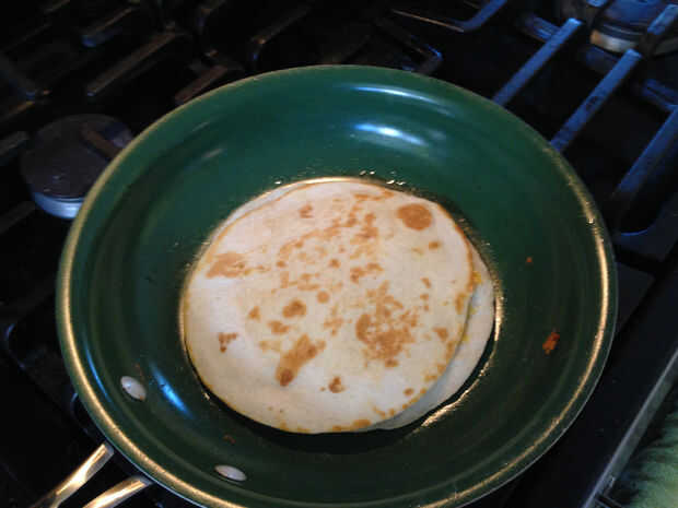 Paso 5: Coloque el pan tortilla en la estufa y cocinar hasta que ambos lados del pan de tortilla es de oro.