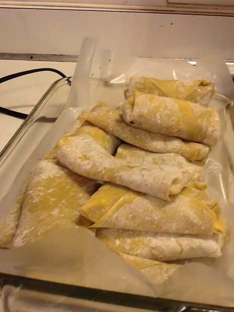 Not RAP! Aunque eso puede ser divertido también. Coloque un contenedor de rollito de primavera en su papel de cera con un punto en la parte superior. Cepillo un huevo blanco en los bordes de dos. Esto sellará el rollito de primavera, cuando haya terminado. Sacar unas 3 cucharadas del relleno en la parte inferior de la envoltura. Doblar la parte inferior del rollo. Luego, doble los dos lados, asegurándose de que ninguna parte queda abierta a los lados. Finalmente enrollar todo firmemente, asegurándose de que la parte superior de los sellos bien. Coloque rollos terminados en una sartén o en una bandeja y cubrirlas para que no sequen.