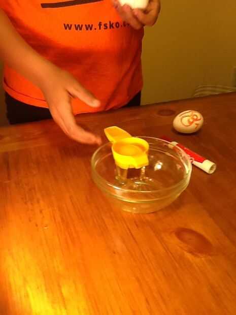 Mientras que el relleno es de enfriamiento, enchufe en la sartén (con aceite fresco en él), salir de algún papel de cera, cucharas, sus envolturas de rollo de primavera, una brocha de cocina y los huevos. No dude en llamar ojos o las caras en los huevos primero. Cuidadosamente de la grieta, guardando la yema hacia fuera. Utilizar un separador de huevo o el shell para coger la yema de huevo. Batir las claras de huevo y prepárese para divertirse con amigos.