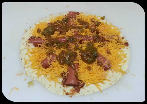 Si se desea, añadir una cucharada o dos de salsa y salsa picante. Luego simplemente cubierta con una segunda tortilla y en un plato seguro de microondas, calor alto durante dos o tres minutos.