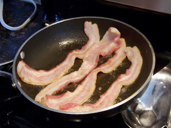 Mientras se cocina el tocino, seguir adelante y romper los huevos en un tazón para mezclar. Mezclar o revolver a una mezcla bastante homogénea.