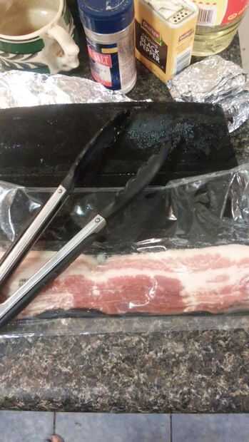 La ventaja de tocino en el horno de la hornada: todas las gotas de grasa de la panceta y sobre el pan, por lo tanto reduciendo la grasitud, calorías, grasa y tendrán tocino crujiente. Cuando se hornea el tocino, el tocino uniformemente cocina le perm