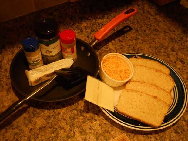 La mayoría de mis ingredientes provienen de mi gabinete. No uso medidas. Sólo depende de cómo me siento ese día. Depende de usted cuanto quiere añadir de cada uno. Voy a poner mis estimaciones junto a cada uno. Hice dos sándwiches con esto.