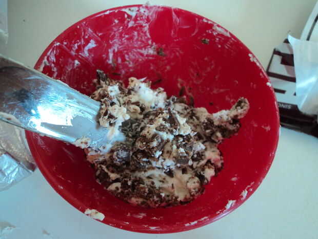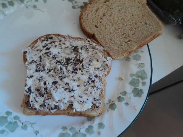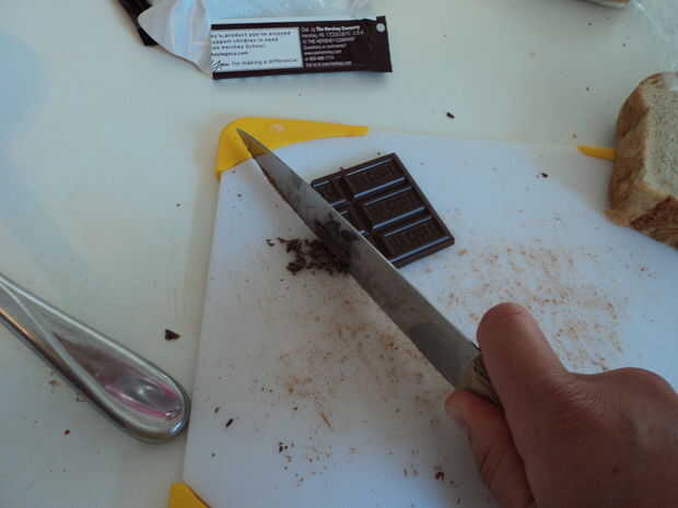 También necesitarás chocolate- cualquier variedad hará el trabajo (leche u oscuro, incluso podría intentar con sabor a chocolate!) picado o en forma de viruta. Mezclar con queso crema: ablandado a temperatura de ambiente para diseminación-derretimiento-ablity y, sólo lo suficiente para adherir las piezas de chocolate juntos y crear una extensión. Extensión la extensión sobre el pan (Dr. Suess, alguien?) y de la tapa con otra rebanada para hacer un sándwich. Fácil, ¿verdad?