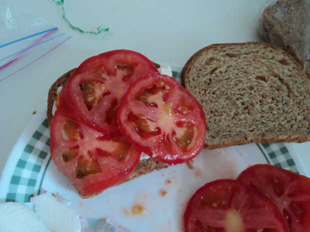 Por lo tanto, cortar mozzarella fresca* y sabor tomates- Inicio cultivadas o cultivadas localmente. Usaba tienda compró pesto que es muy sabroso cuando adquirió a través de una buena marca, pero puede utilizar casera si te gusta. Capa de mozzarella primero en el pan, y tomates y pesto (ser generoso con el pesto, que es donde la mayor parte del sabor viene de), a continuación, más mozzarella.