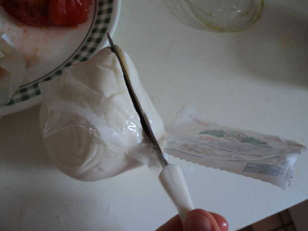 * un Consejo práctico para cortar mozzarella super delgada para pizza u otros usos, es acaricíele seca, envolverlo y ponerlo en el congelador durante 30 minutos. El queso también puede guardarse en el congelador como lo usas en algo derretido.