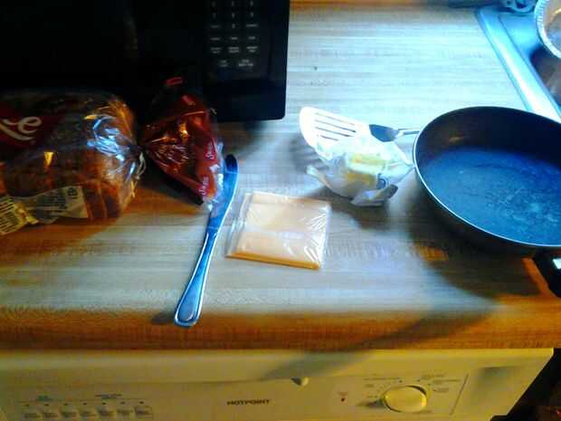 Paso 1: Tostar el panPaso 2: La tostada de mantequillaPaso 3: Aplique dos trozos de queso en un pedazo de panPaso 4: Sándwich el pan juntos y de microondas por 30 segundos Paso 5: disfruta!