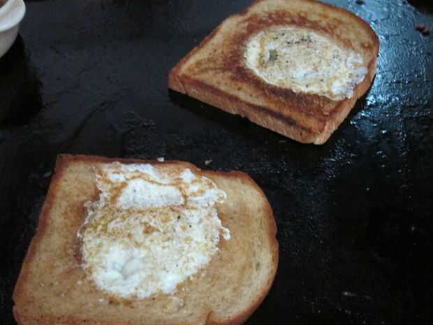 Si prefiere el huevo en su sandwich para ser codificado, utilice un tenedor para romper la yema y mezclar. Si prefieres un huevo que moquea (como yo) con cuidado voltear el huevo.