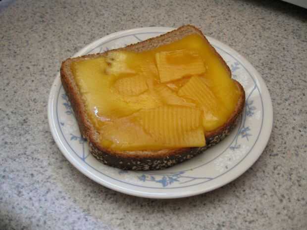 Coger las lonchas de queso caliente (debe todavía tienen sobre la misma consistencia como lo hicieron cuando te los pones) y en una de las rebanadas de pan. Poner en el microondas mientras dejando la otra rebanada.