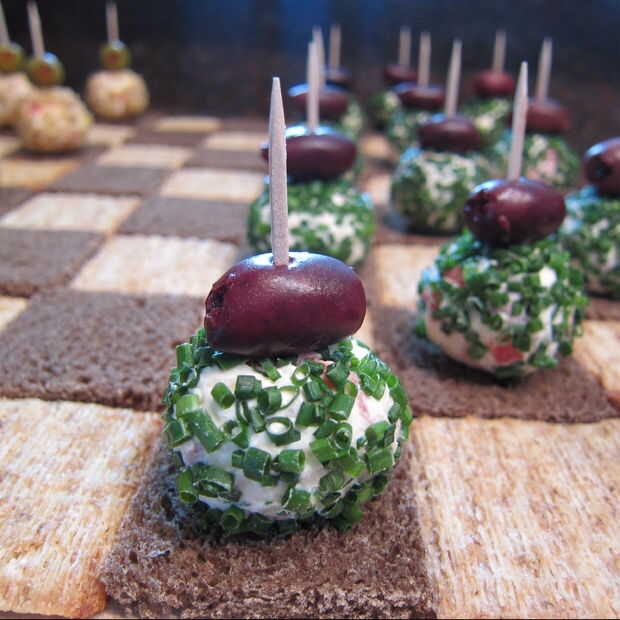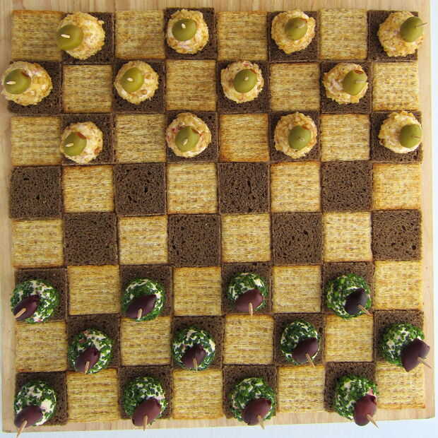 Recuperar mordeduras de bola de queso de la nevera y sólo en las primeras tres filas de cada lado de la Junta y sólo en las galletas o el pan para configurar el juego. Usted decide.