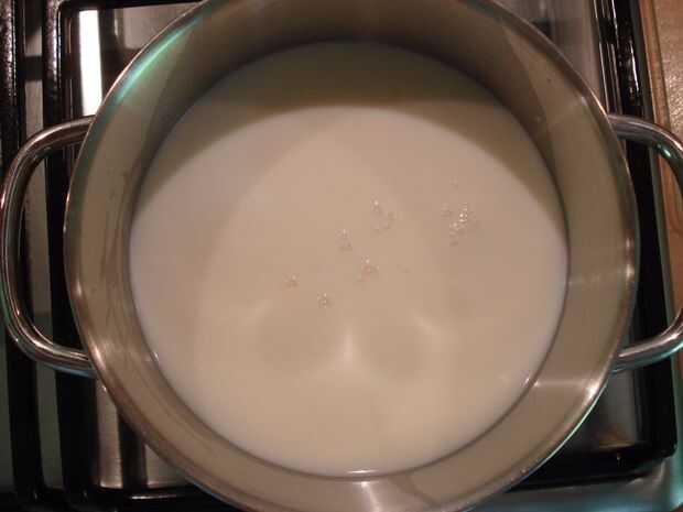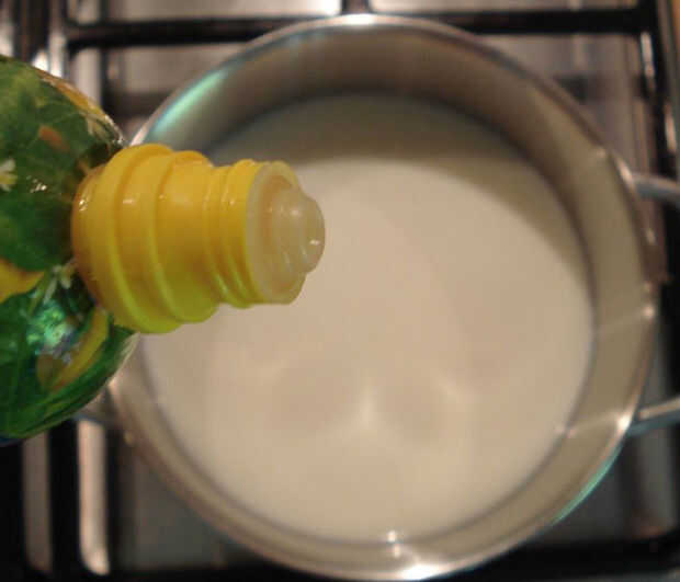 Vierta el jugo de limón en la olla con la leche.