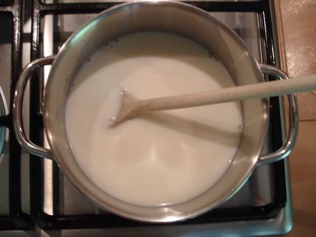 Mezclar la leche con el jugo de limón con una cuchara de madera.