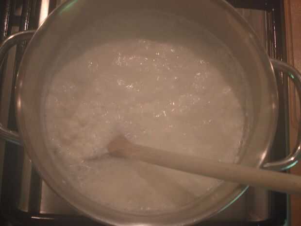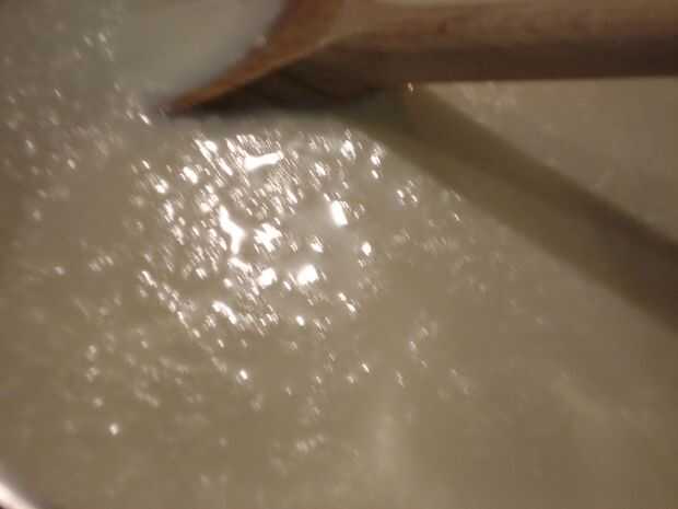 Más coágulos comienzan a forma y los coágulos se convierten en más grandes. El líquido acuoso se convierte en blanco amarillo y feculento.