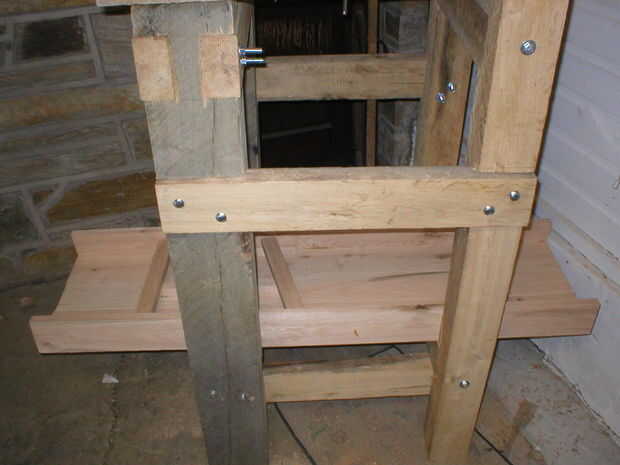 También tengo maderas lado atar juntos los rectángulos y haciendo la prensa. El canal se sienta en el medio, descansando sobre los maderos de la parte inferior.