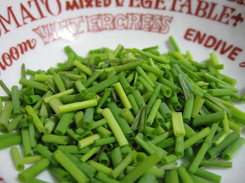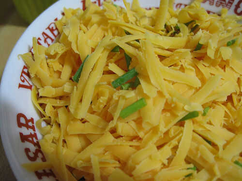 Desmenuzar sobre una 1/2 taza del queso y se combinan con el cebollino. Dejar esto de lado.