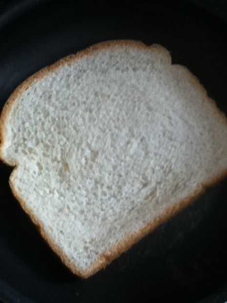 Coloque un pedazo de pan con el lado untado con mantequilla en la sartén.