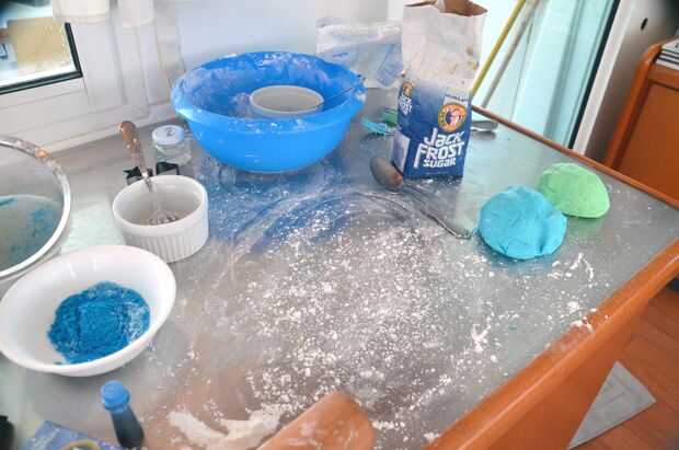azúcar en la superficie de trabajo, desorganizar equipo, caer un par de cosas