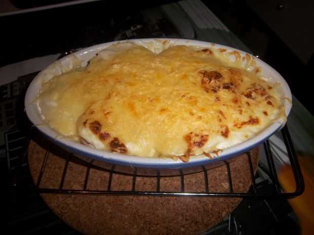Cuando el gratén Dore, aproximadamente después de 10 minutos, sacarlo de horno y permitir que el gratén de reposar al menos 5 minutos y servir.