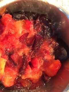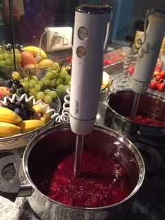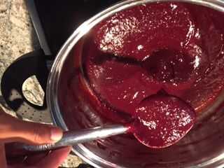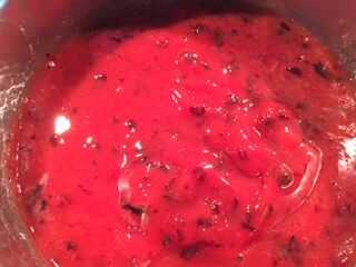En un fondo pesado cocinar pan Vierta el puré y los sobres de pectina. Revolver.