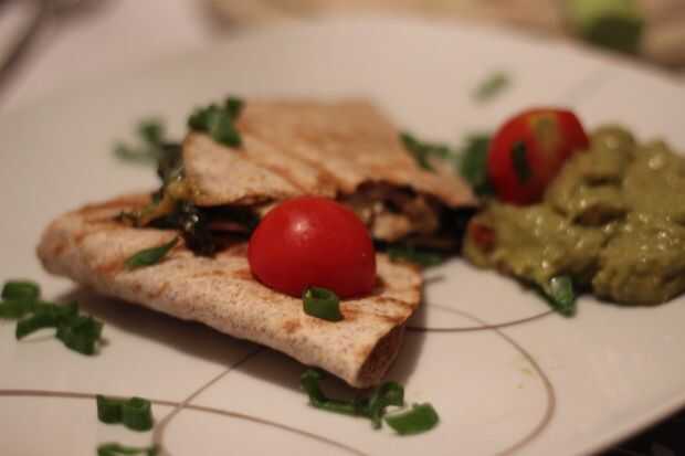 También he hice un guacamole y combinado con las quesadillas. El sabor fresco de la (guacamole) con estas quesadillas de queso hermosa es increíble.