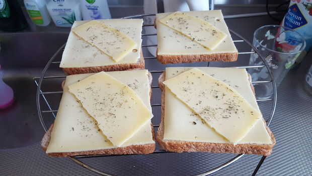 Condimento! Usar cualquier condimento que te gusta, también puede poner una rodaja de tomate en la parte superior, o lo que quiera!