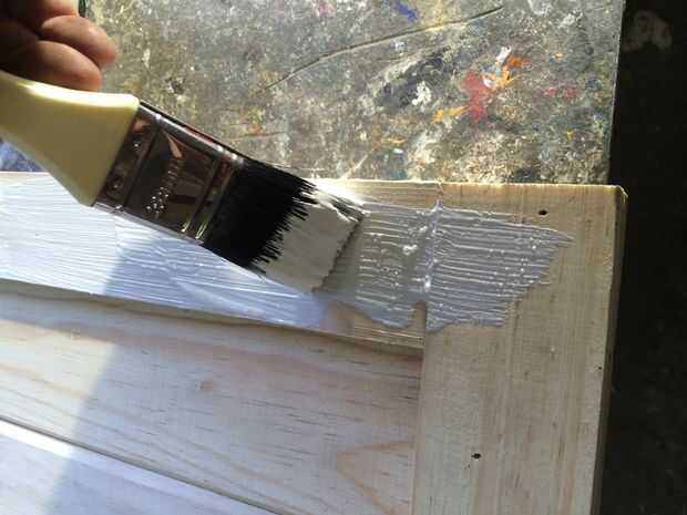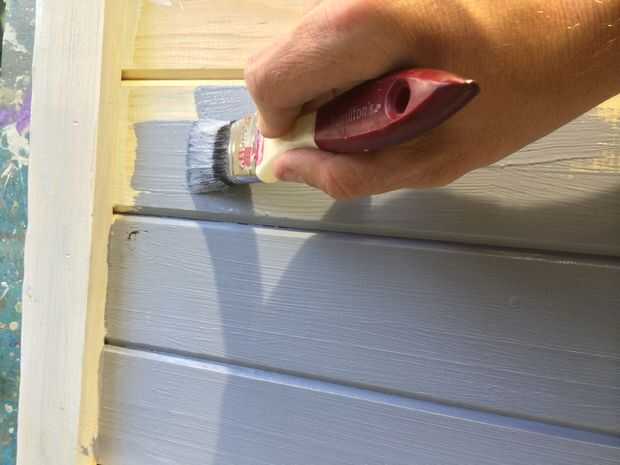Empezamos con una capa de queso Paint® Natural blanco Hall alrededor de la frontera con un cepillo de cerda pura, para que puedan ver las marcas de pincel. Luego aplicamos dos capas de Hall queso Paint® Saga en el interior no queremos técnica el interior paneles paneles porque estamos tratando de mostrar los efectos de los cuatro selladores diferentes en un solo color uniforme.