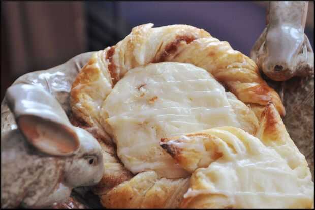Para hacer el molinete danés: Tomar un cuadrado de masa en 1/4 de pulgada de espesor. Corte hacia el centro de cada esquina, pero no absolutamente todo el camino. Doble en todos los rincones hacia el centro de untar un poco de agua en la masa a palillo. Colocar una cucharada de su relleno justo en el centro.