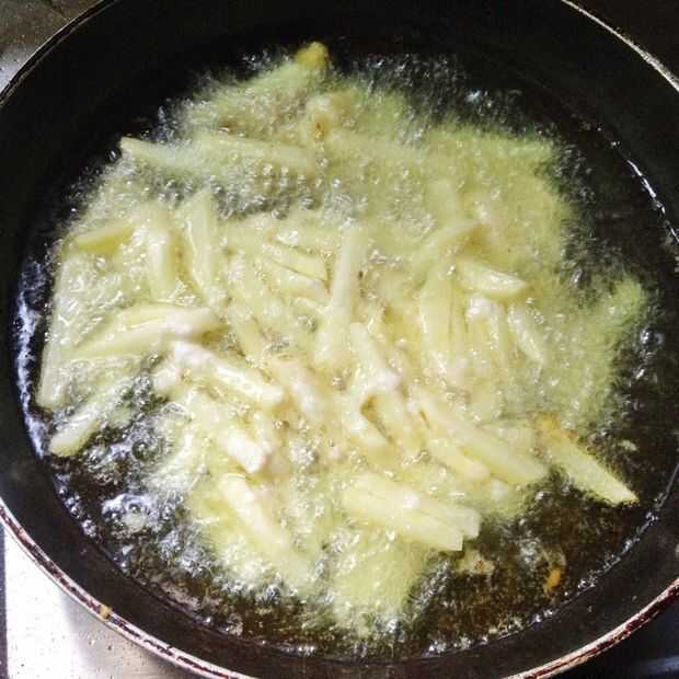 No revuelva con frecuencia mientras se fríe y después de 5-8 minutos dar vuelta las papas alrededor para asegurarse de que están frito uniformemente por todos lados.