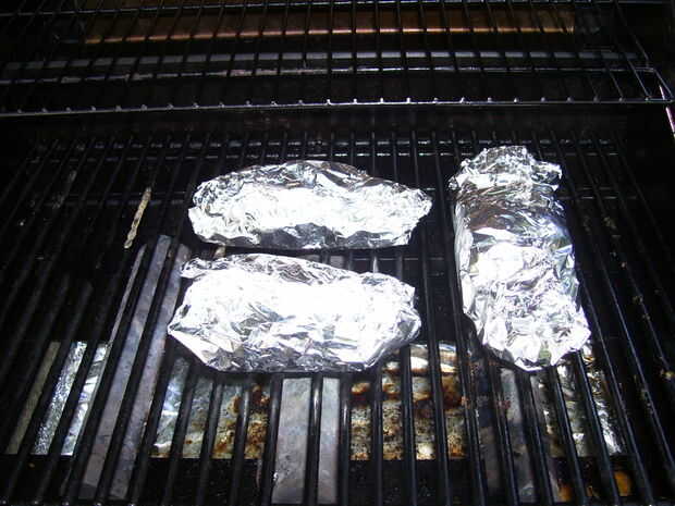 sello hasta los paquetes. cocinar en una parrilla de 350 grados durante unos 15 minutos. Asegúrese de que la rosa ya no existe de todo en las piezas más gordas de la carne.