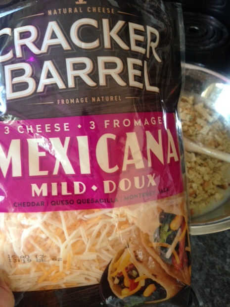 2 1/2 c de listo para usar queso rallado/rallado (puede usar Swiss, mozzarella, etc.. Usar Mexicana, se muestra en la imagen) - más queso si quieres resultado cheesier más