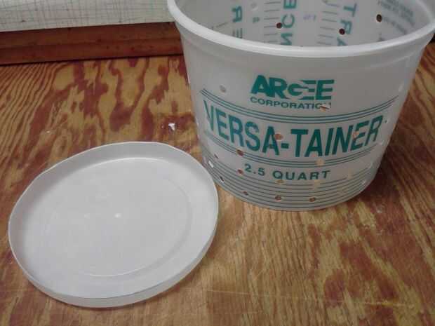 No es la mala clase de molde. Estoy hablando de un contenedor para moldear el queso. Se puede comprar. He hecho algunos por un cubo de plástico. Todo lo que necesitas hacer es quitar la parte inferior y poner un montón de agujeros en él. Guardar el fondo cortado para usar como un corredor.