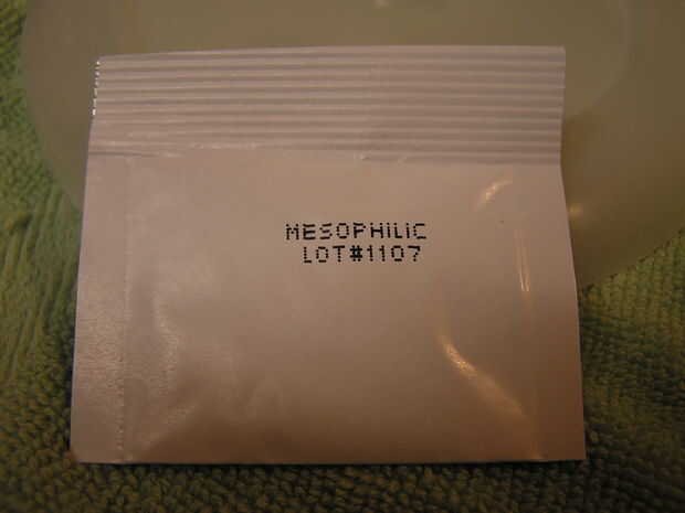 Se necesita una cultura al madurar y sabor del queso que quieres hacer. Sin él, tendrás un queso blanco básico. Hoy estamos utilizando un arranque mesofílico.